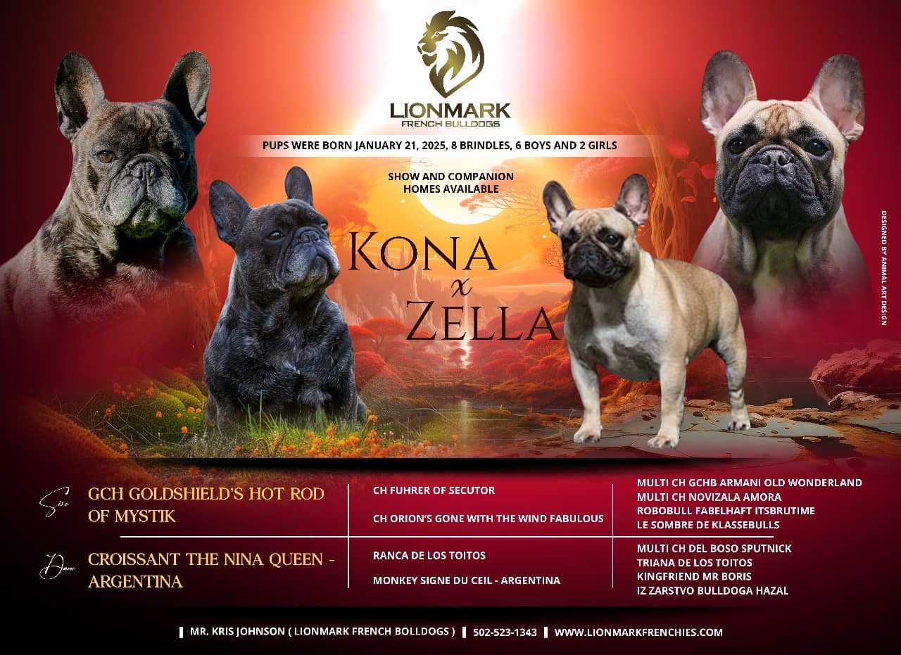Lionmark Frenchies is overjoyed to welcome another exceptional litter — 8 stunning puppies from the beautiful pairing of Kona and Zella! All black brindle and full of promise.
